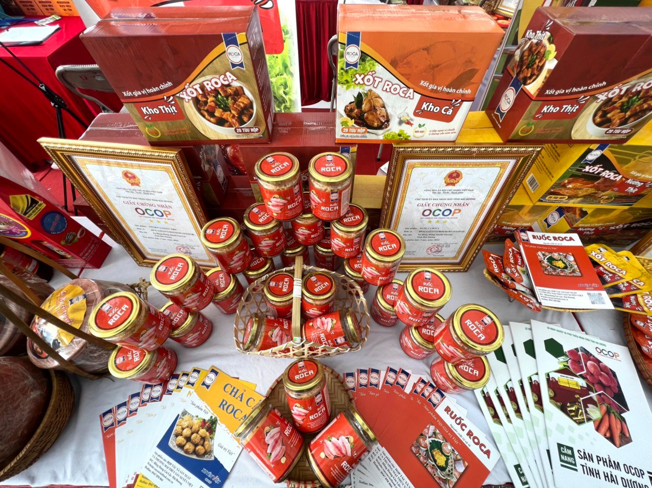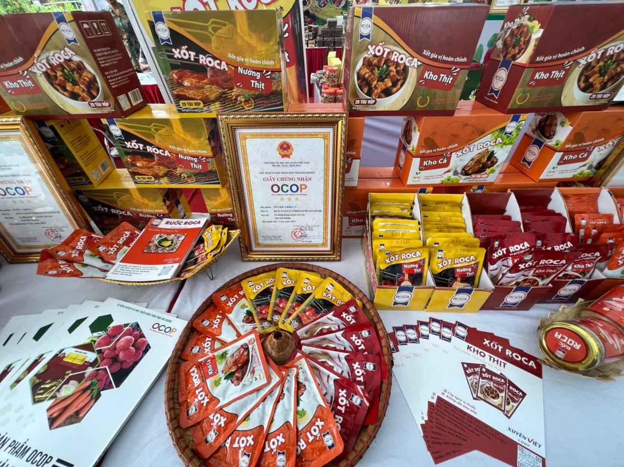 Tại gian hàng của Xuyên Việt Coop, những sản phẩm chế biến từ thủy sản mang thương hiệu Roca đã được trưng bày một cách tinh tế và hấp dẫn. Khách tham quan không chỉ được trải nghiệm hương vị độc đáo của nước xốt Roca, ruốc Roca, chả cá Roca, cá kho mà còn nhận thấy sự cam kết về chất lượng và nguồn gốc sản phẩm.